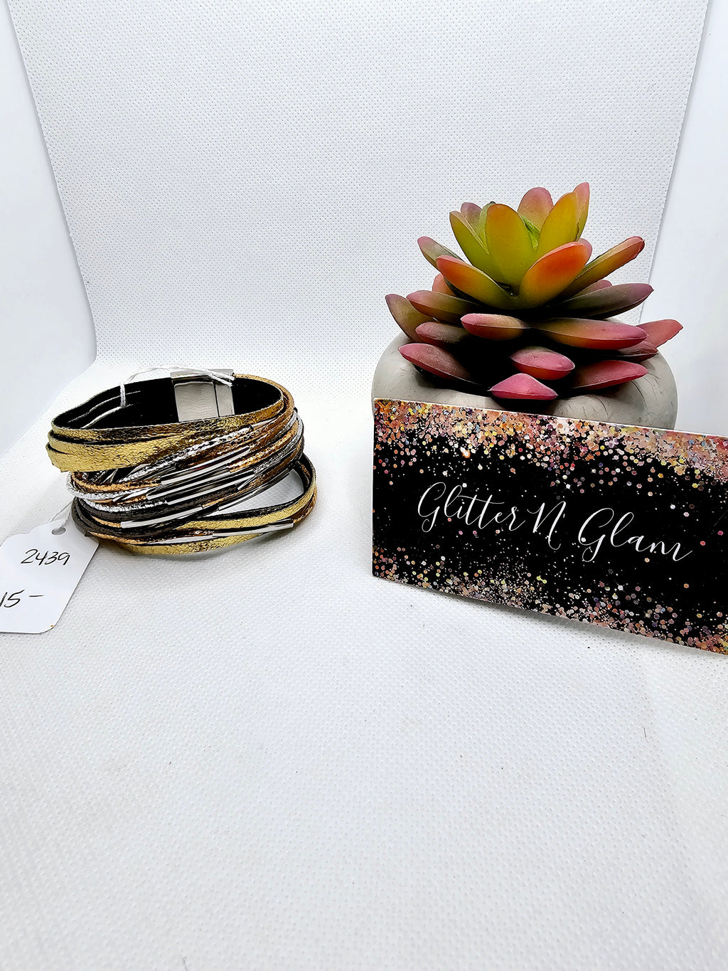 2439 Gold/Rosegold/Gunmetal with Silver Accents Leather Wrap Bracelet