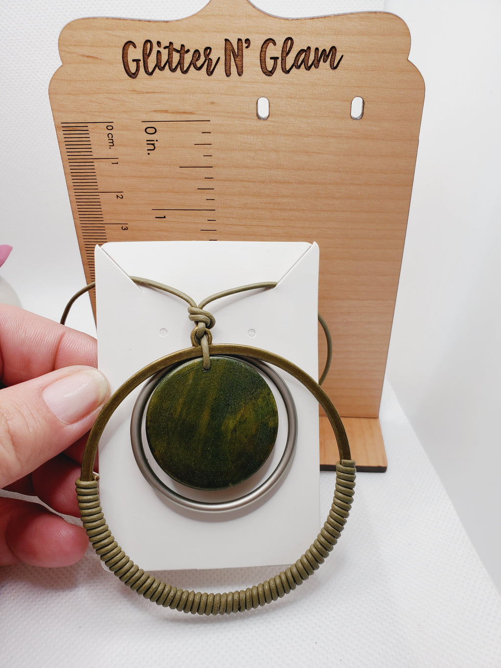 549 Olive Green Long Sweater Necklace