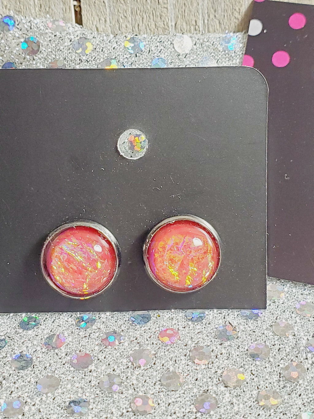 756 Iridescent Coral Mermaid Scale Stud Earrings