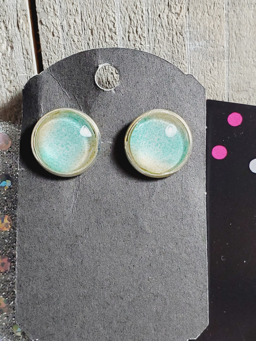 762 Greenish Blue and Yellow Stud Earrings