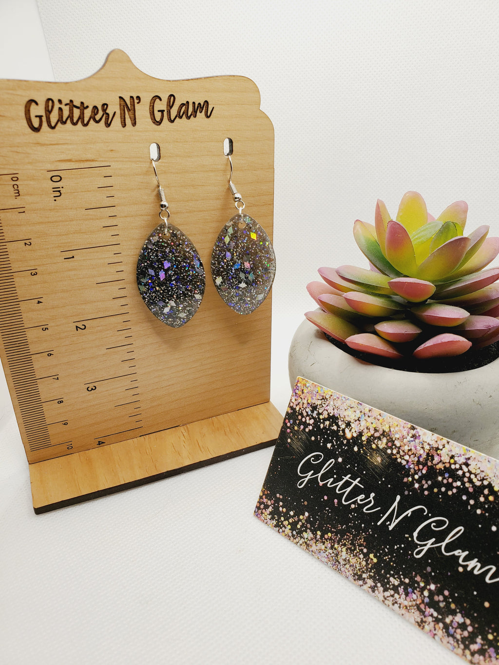 1250 Ombre Black to clear with Glitter Resin Open Teardrop