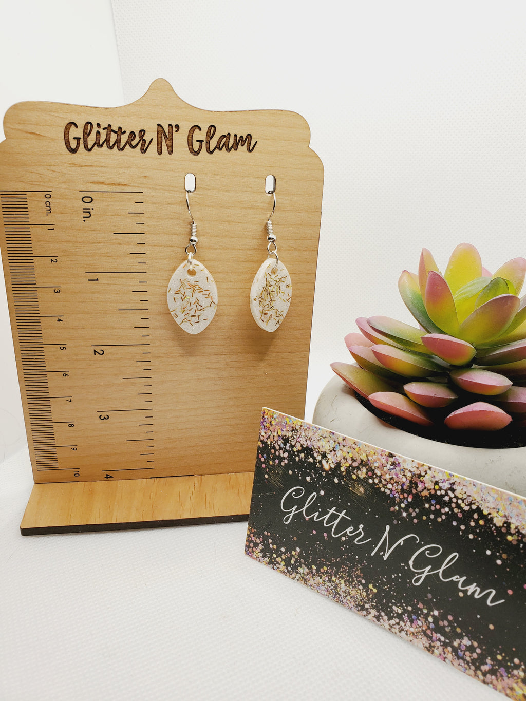 1246 Resin White with Gold Sparkles Dangle Earrings