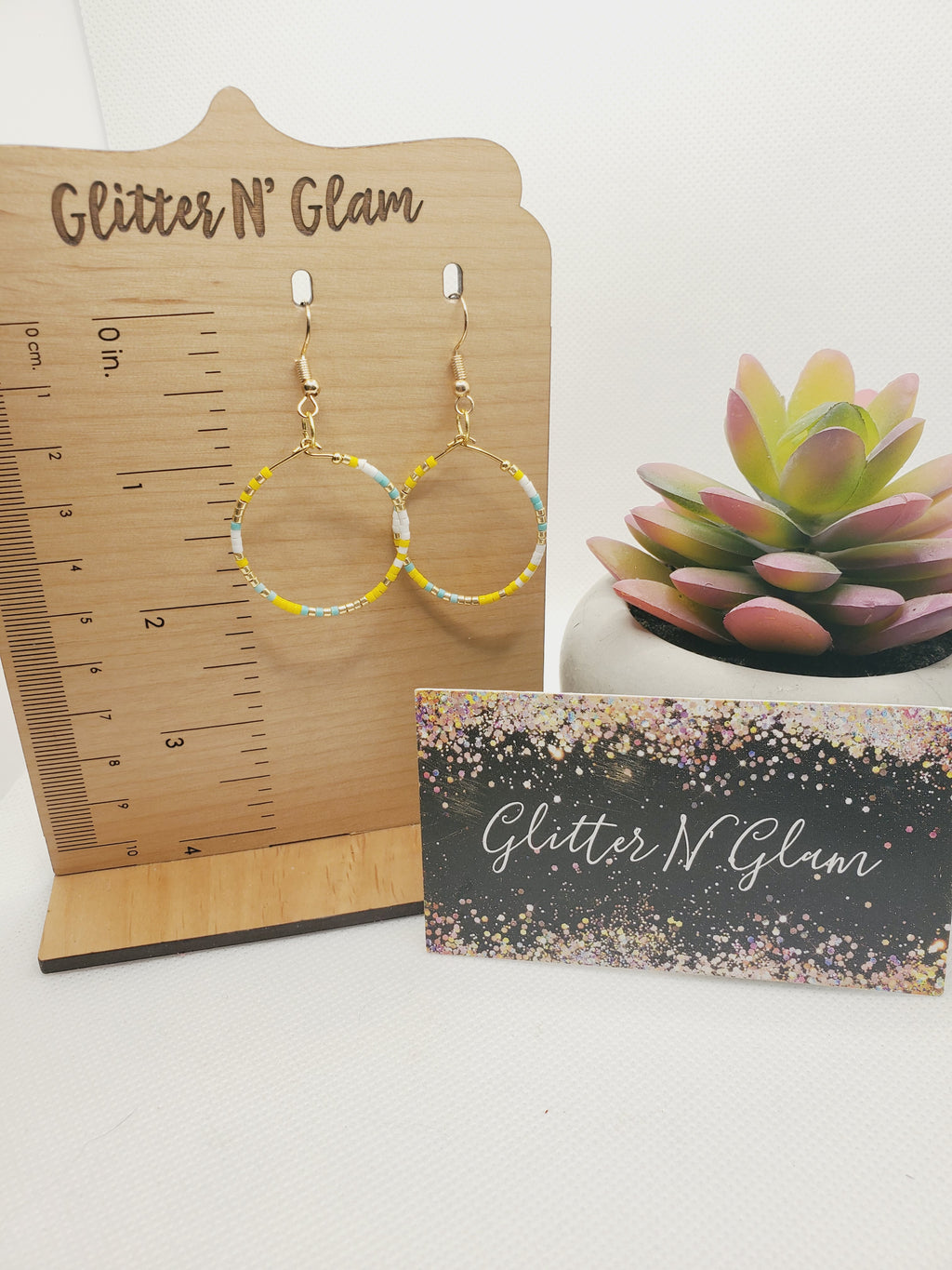 1252 Yellow, teal and White Hoop Dangle Earrings
