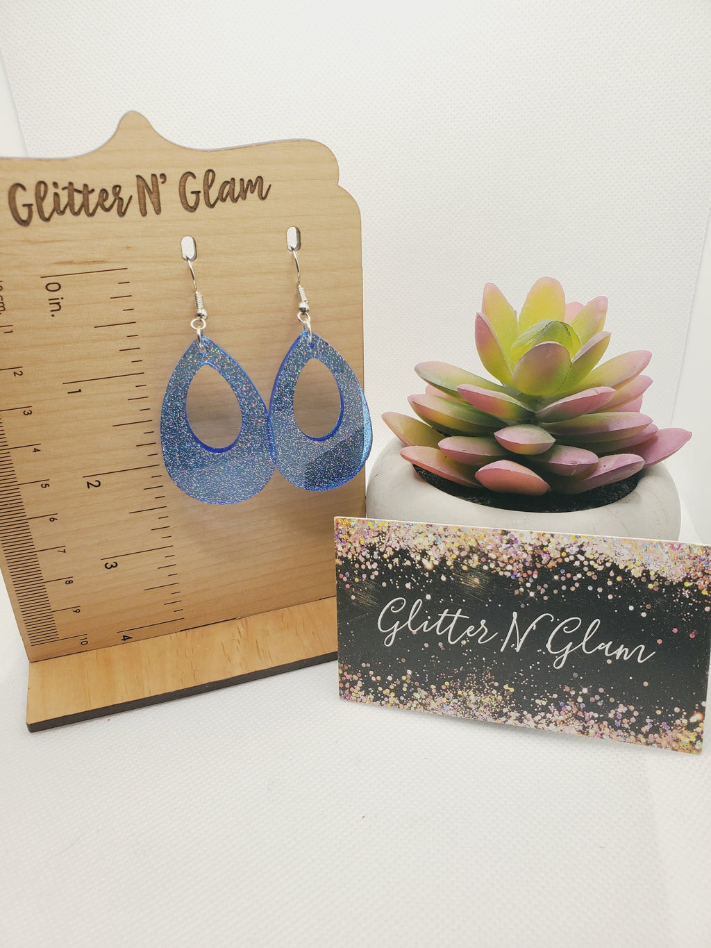 1251 Blue with Glitter Resin Open Teardrop Dangle Earrings
