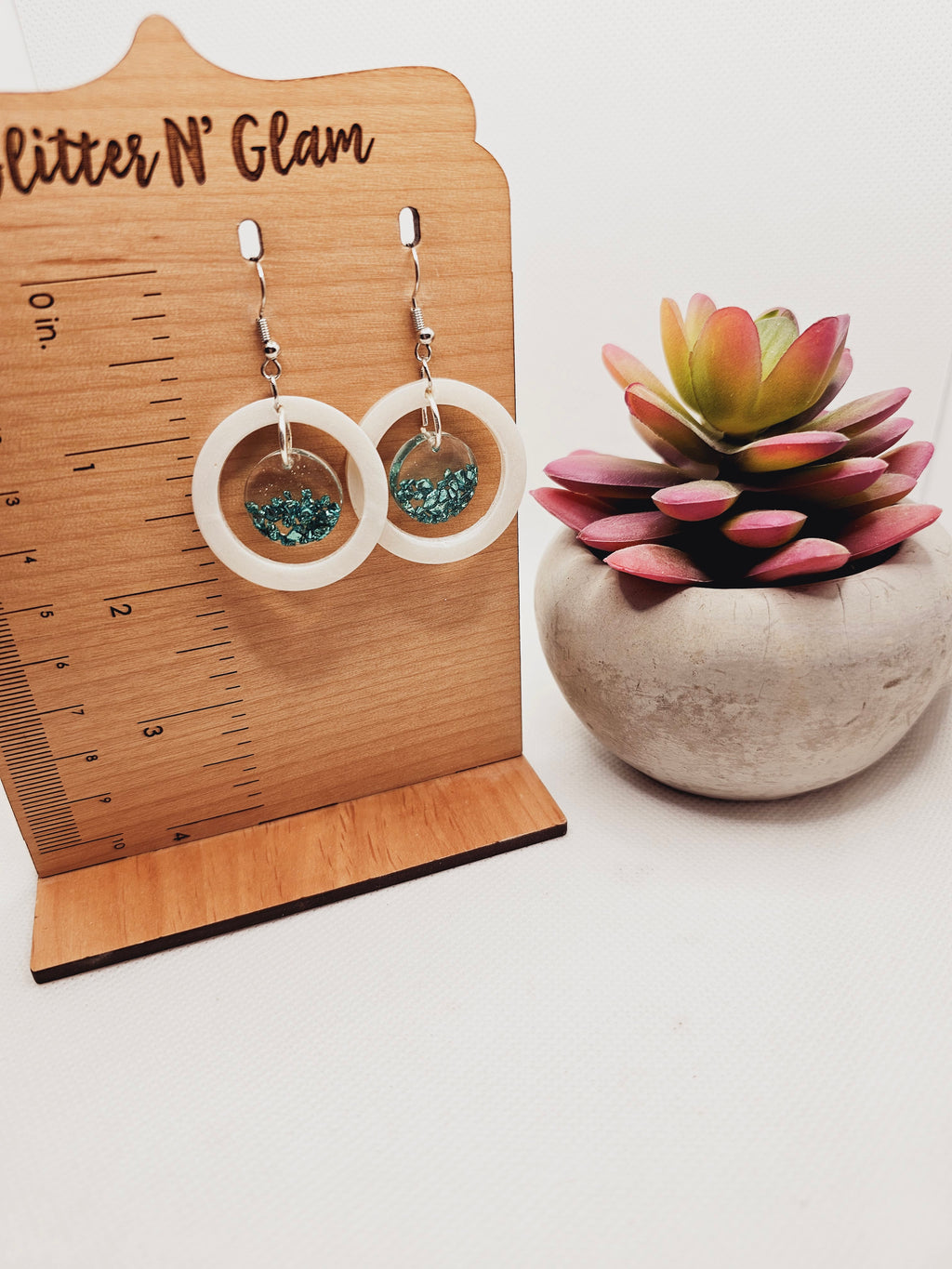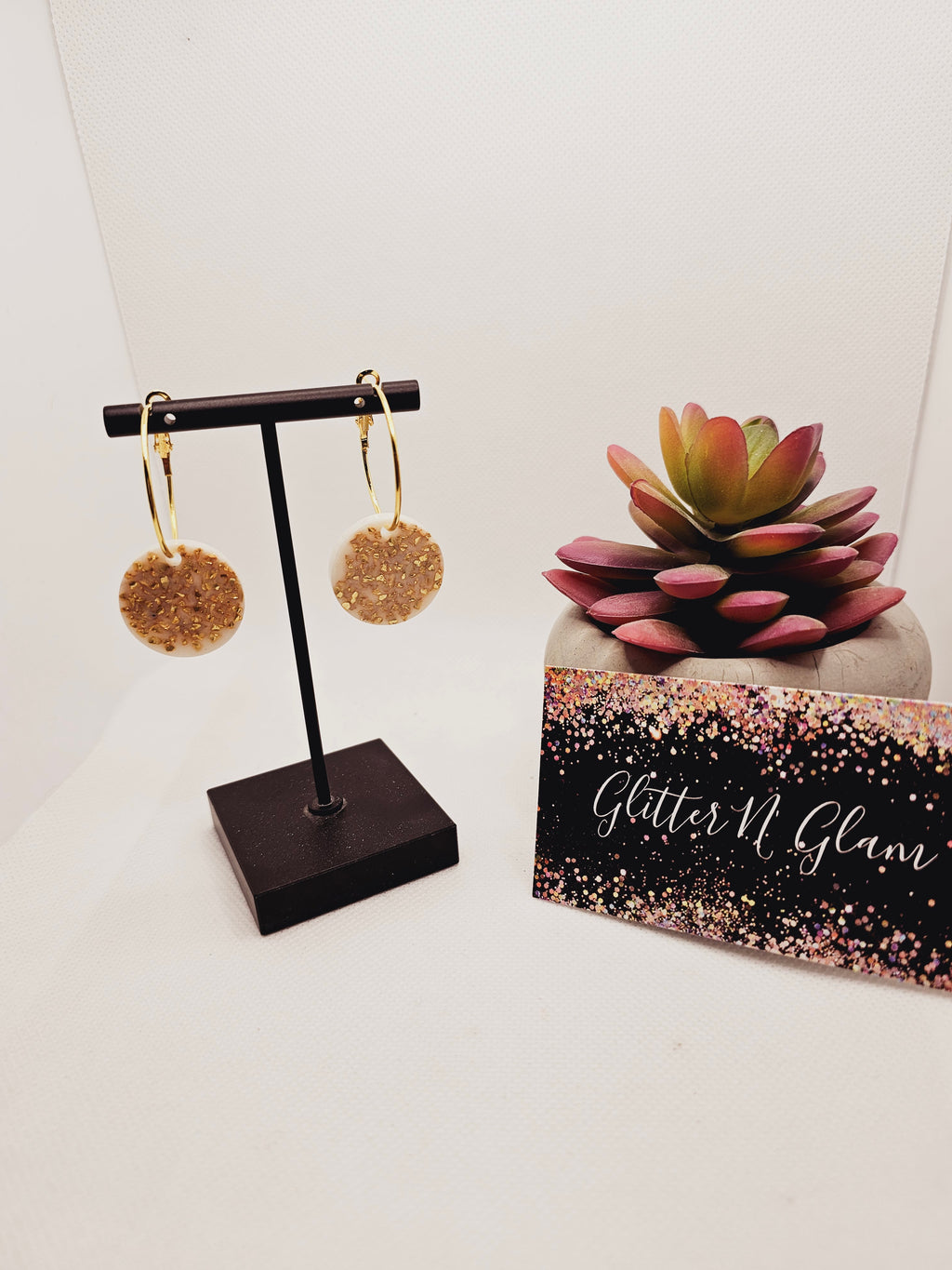 1781 Pearl White Resin with Gold Crushed Glass on Gold Hoops