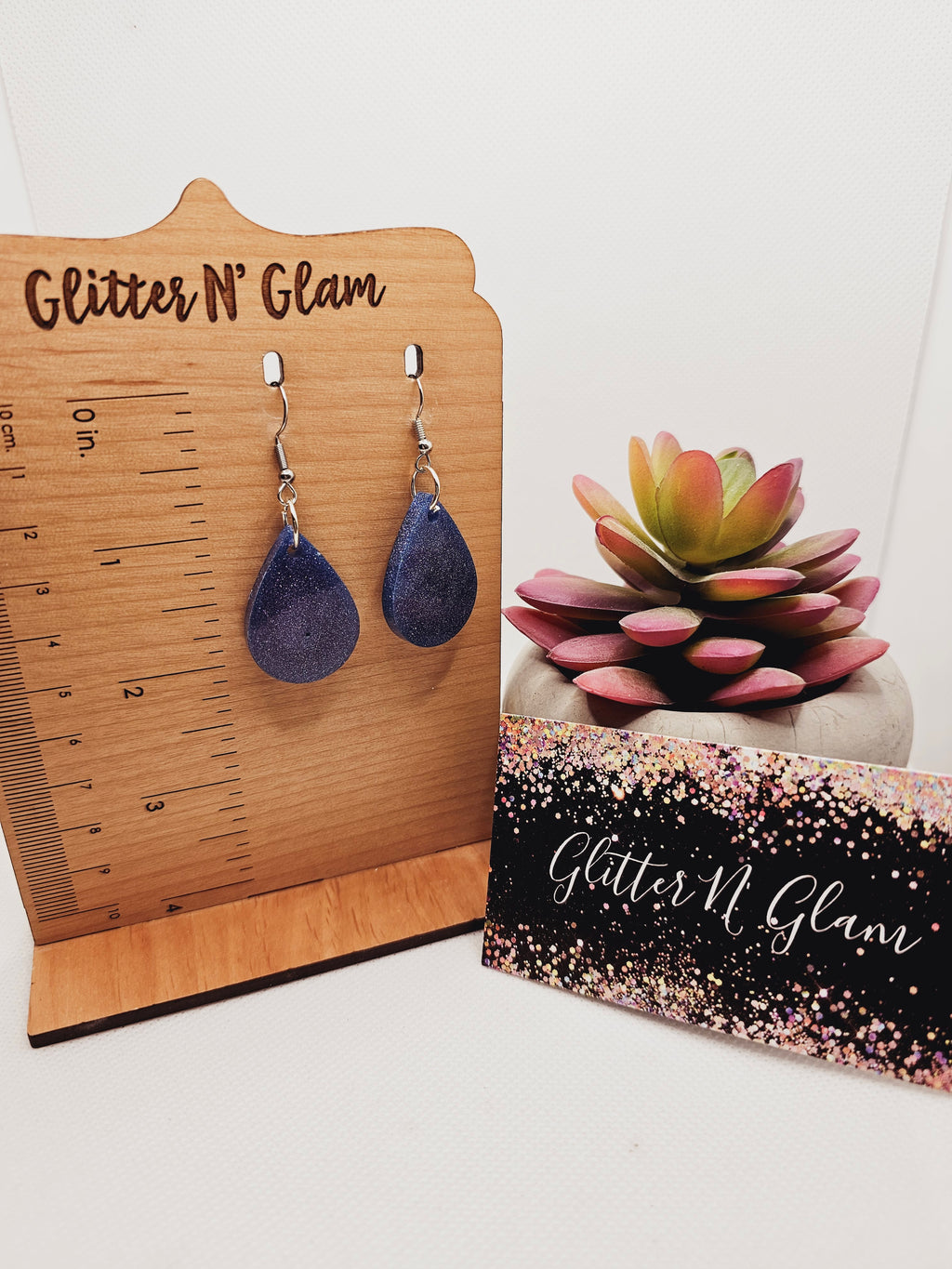 1773 Navy Blue Resin with Silver Crushed Glass on Silver Hoops