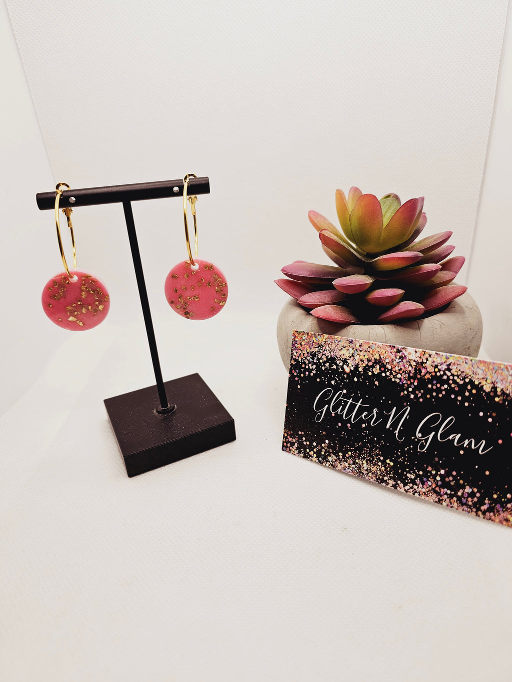 1780 Pink Resin with Gold Crushed Glass on Gold Hoops