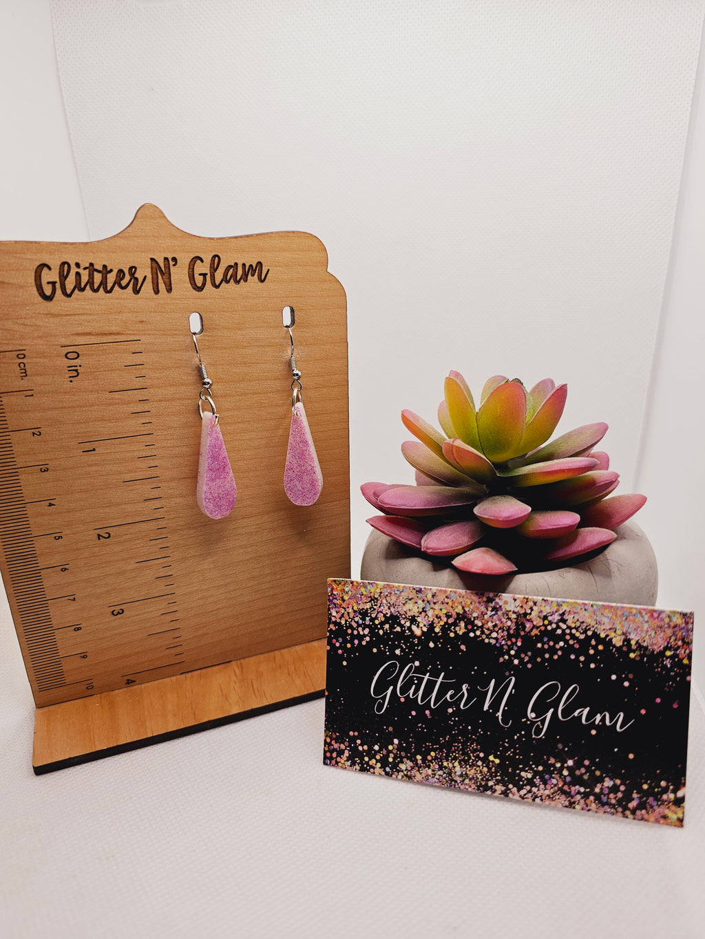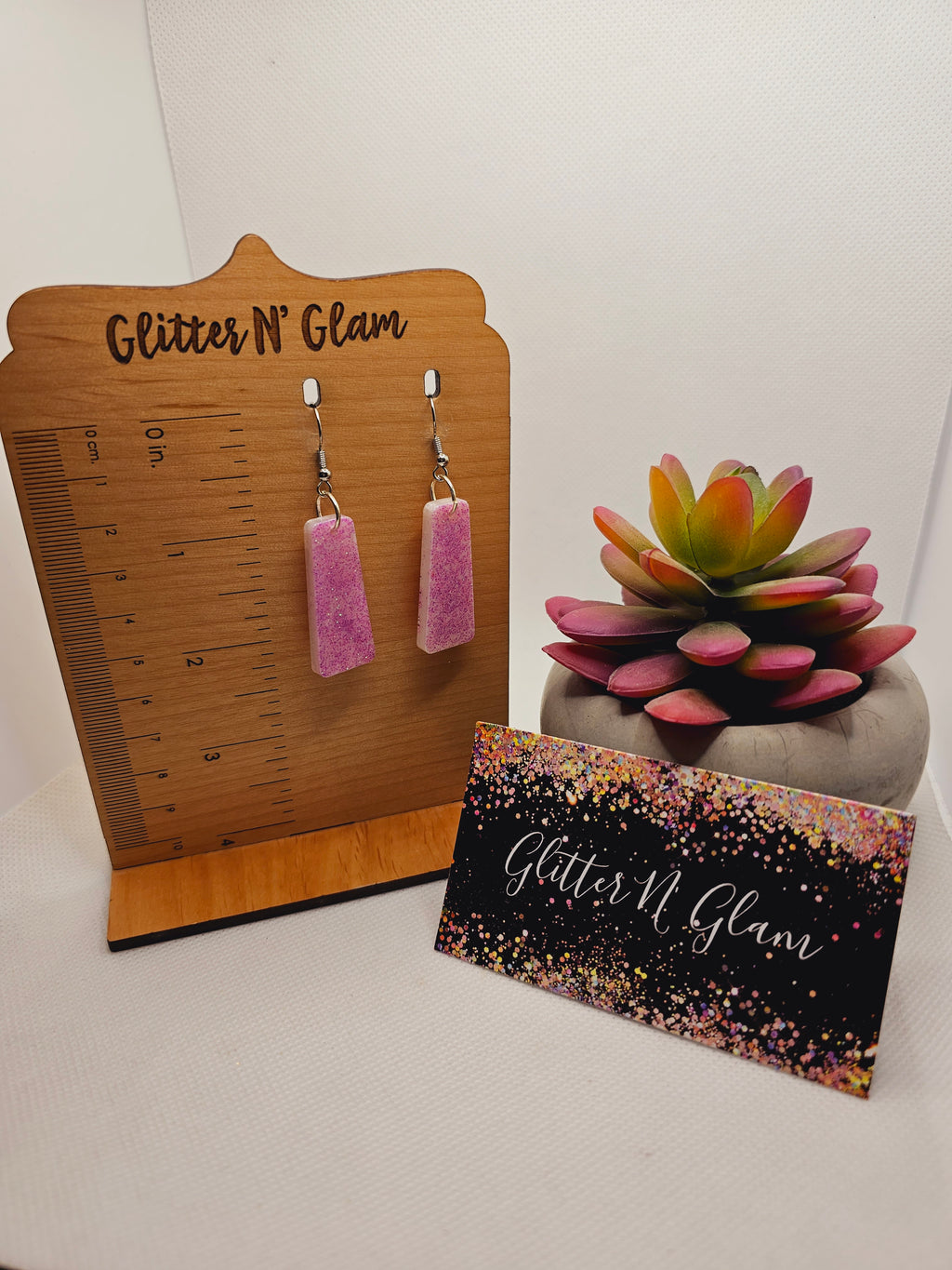 1796 White with Purple Glitter Resin Dangle Earrings