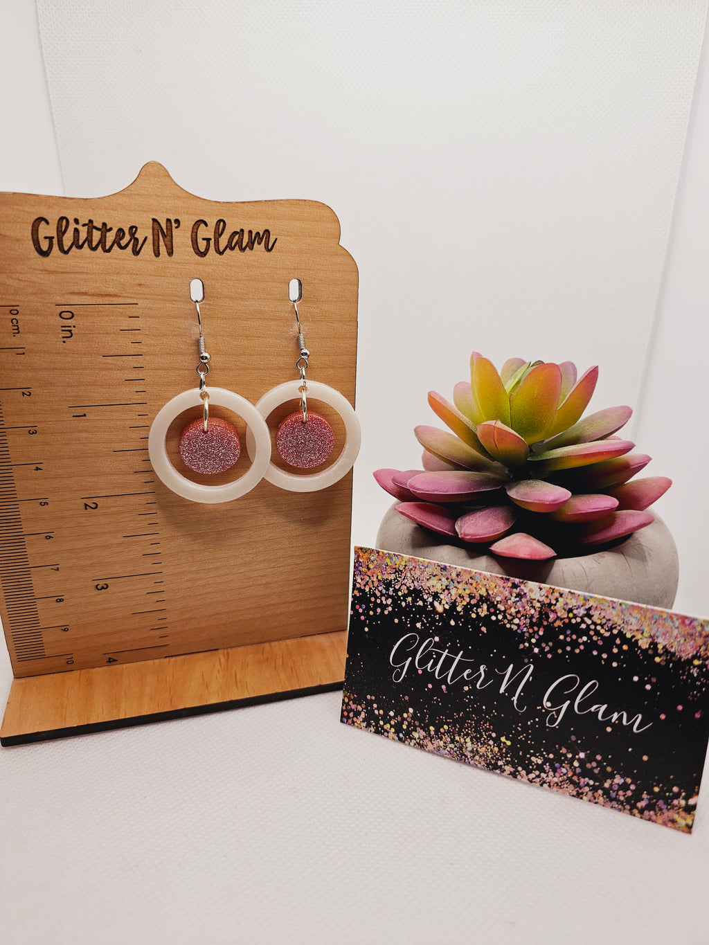 1799 White Open Circle with Pink Sparkly Dangle Earrings