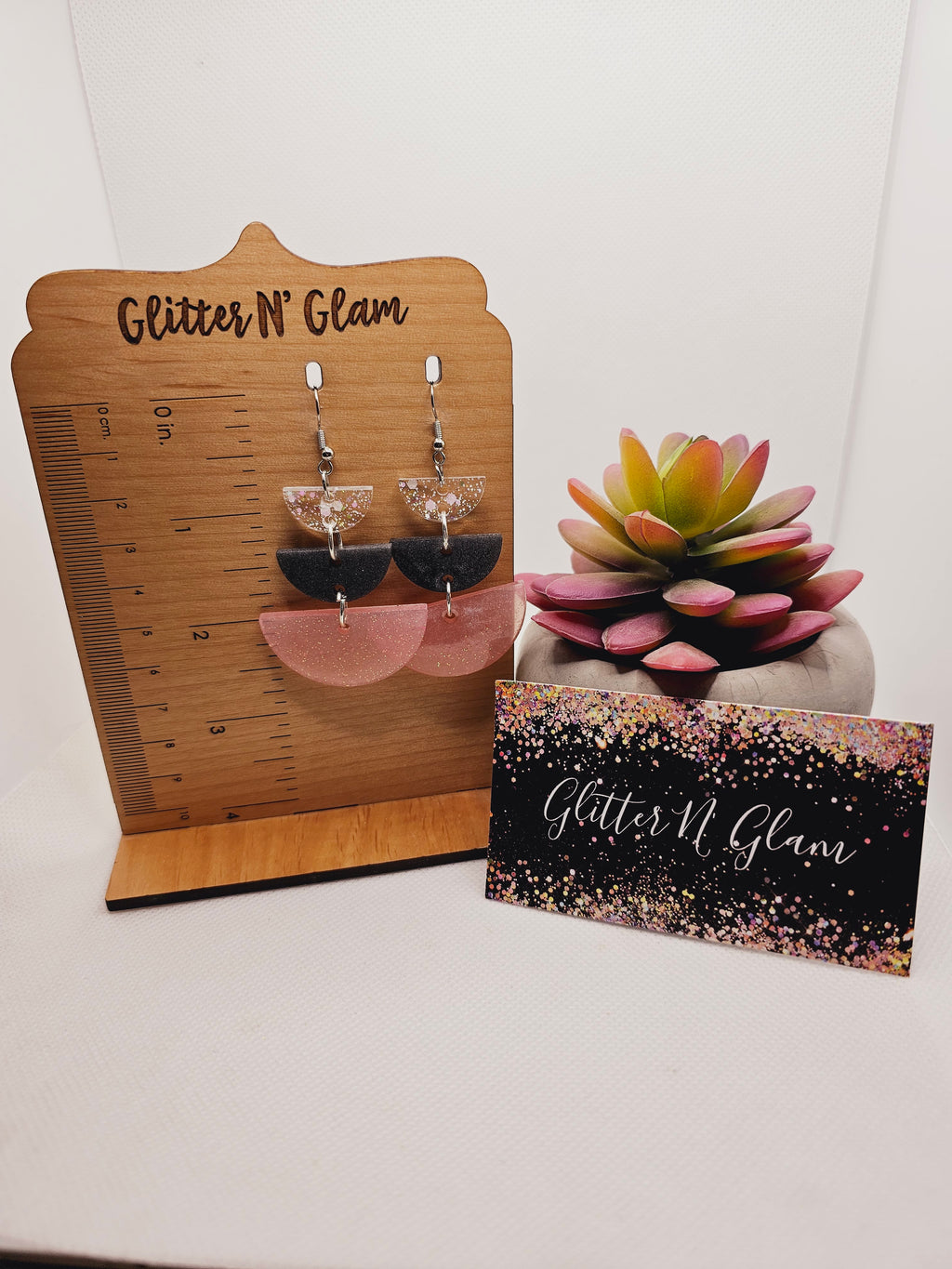 1821 Gray with Rosegold Crushed Glass Resin Dangle Earrings