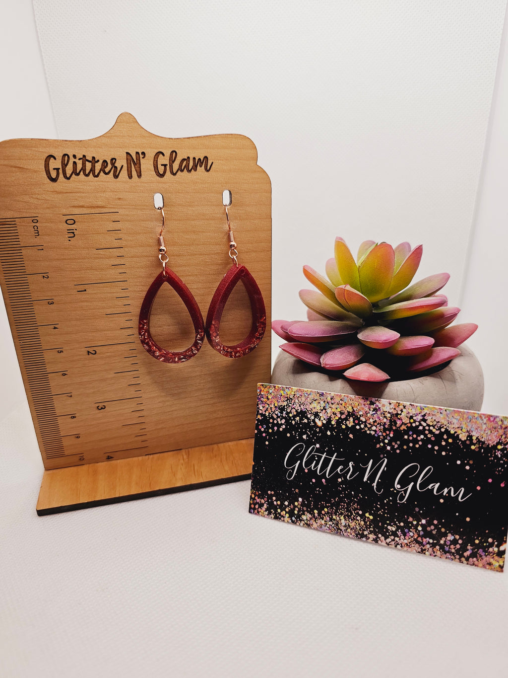 1822 Burgundy Open Teardrop with Rosegold Crushed Glass Dangle Earrings