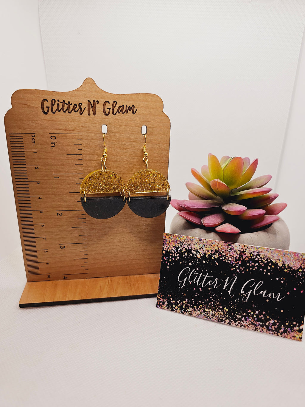 1823 Black and Gold Sparkly Half Circle Dangle Earrings
