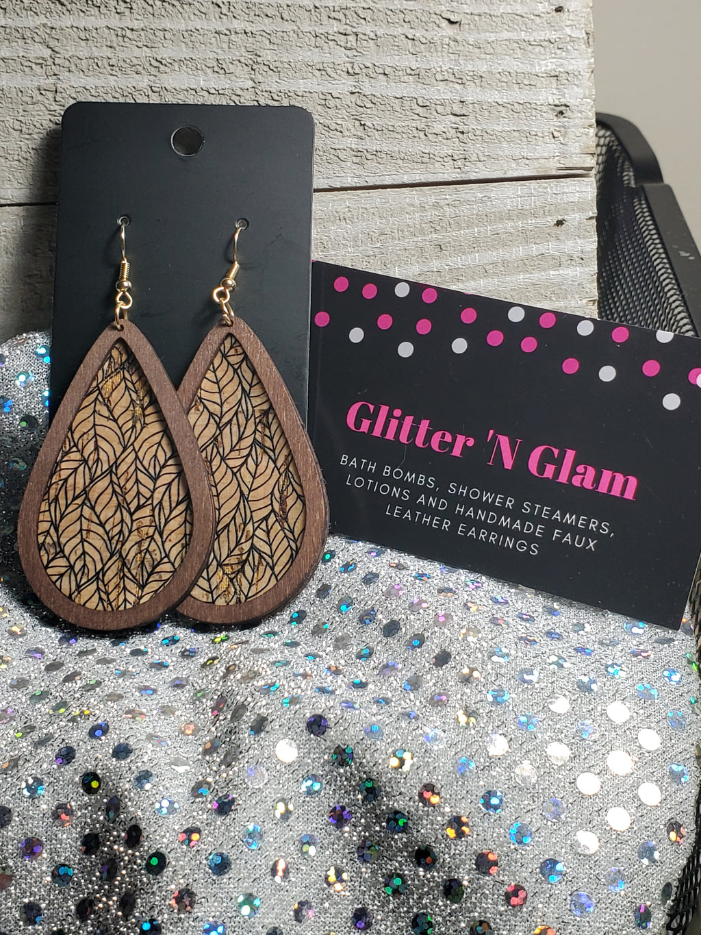 188 Black Leaves Wooden Teardrop Dangle Earrings