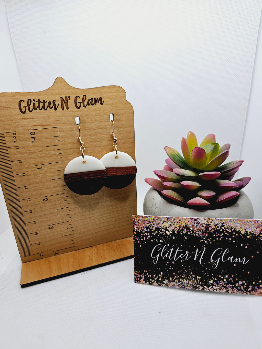 1884 Black/white Resin/Wood Circle Dangle Earrings