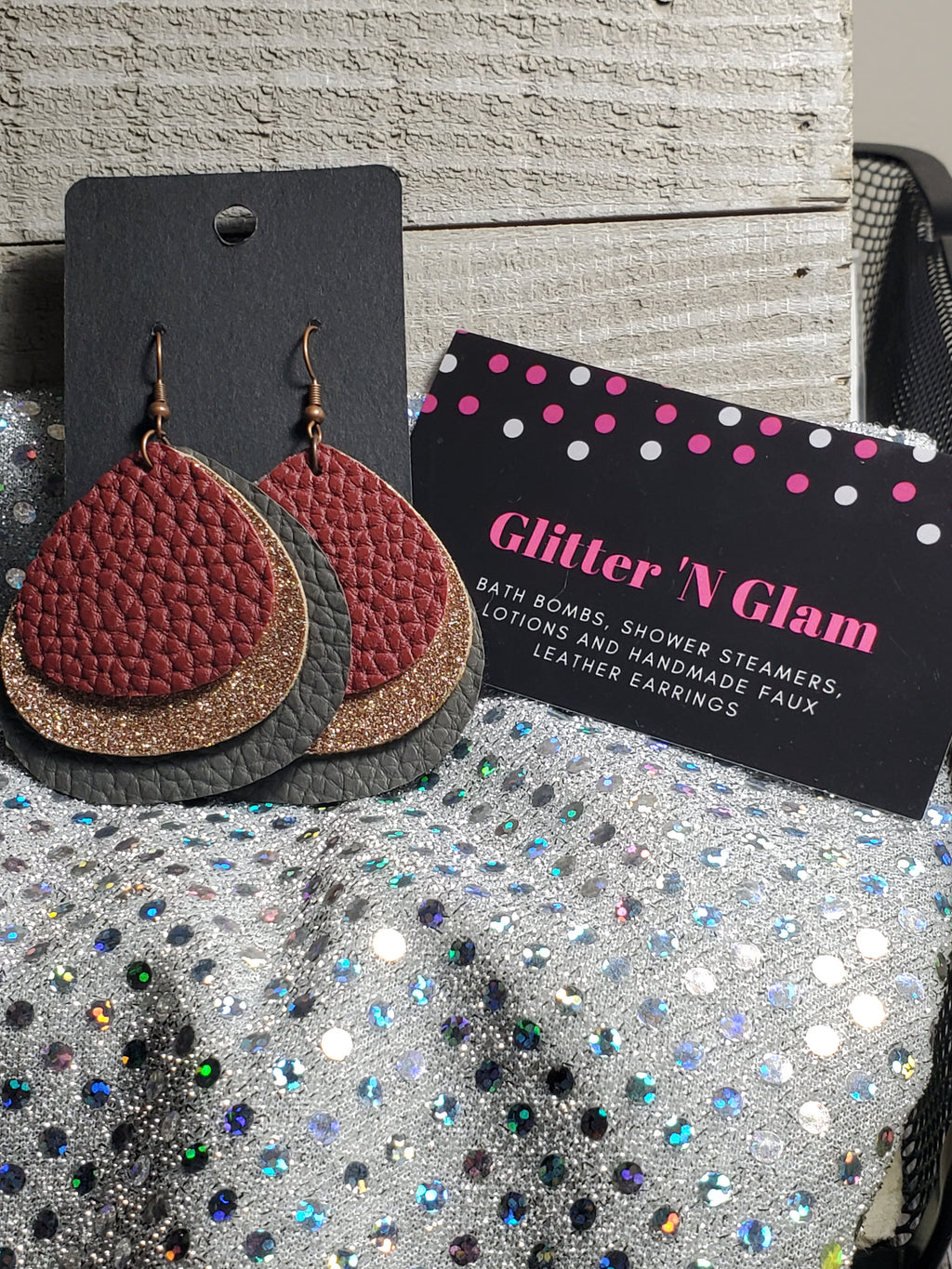 189 Burgundy, Rosegold and Gray Three Layer Fat Teardrop