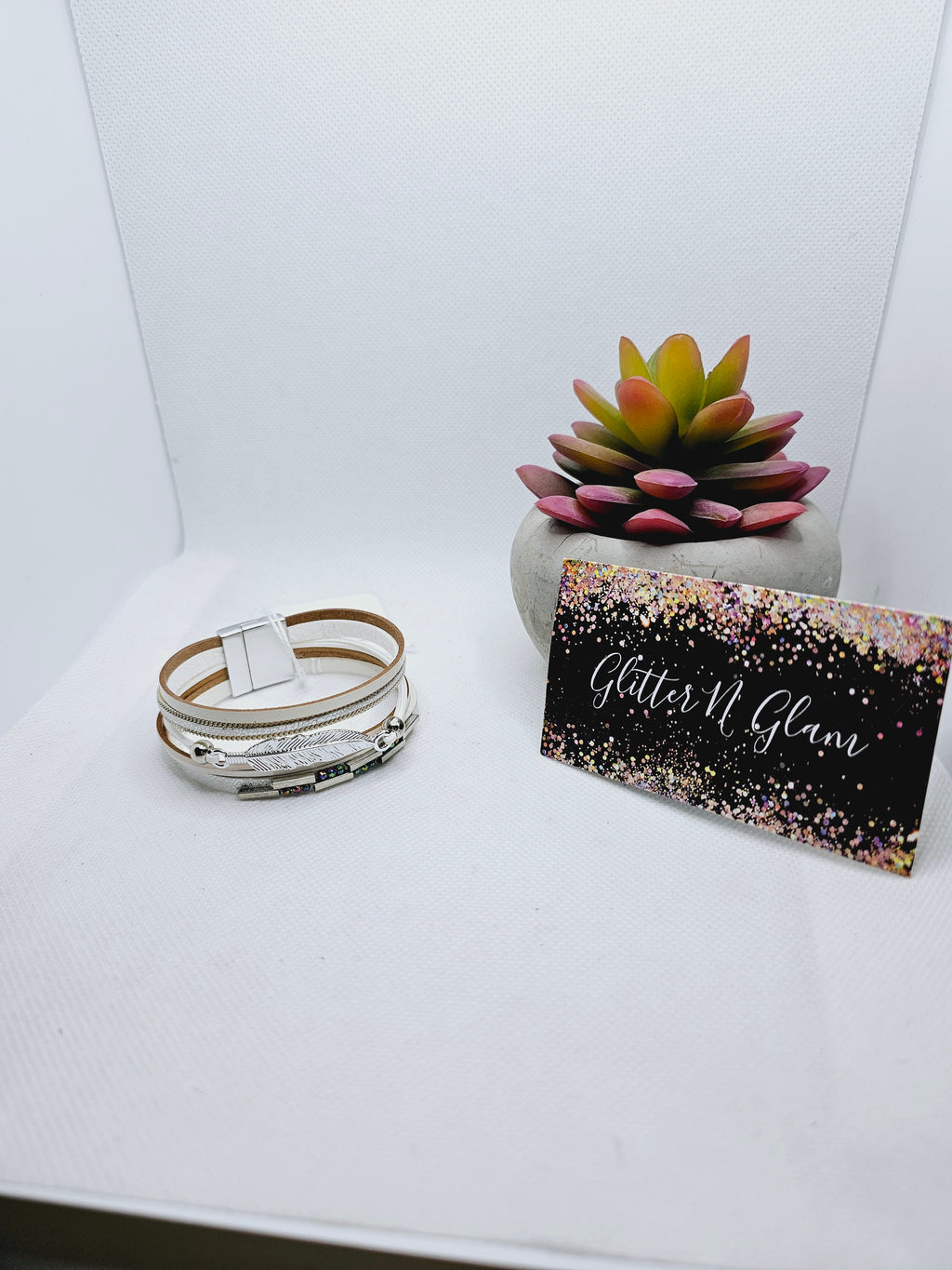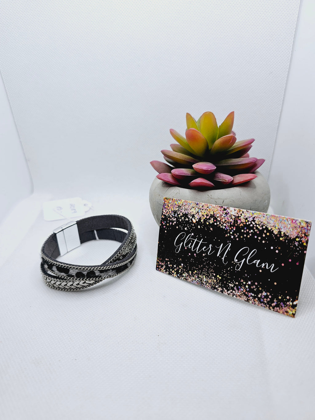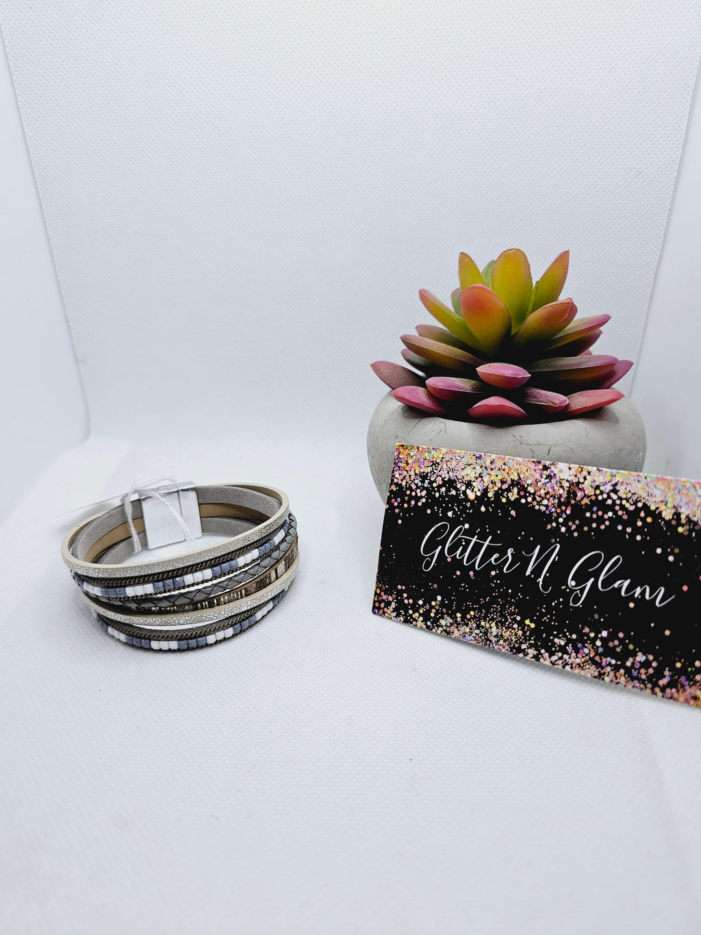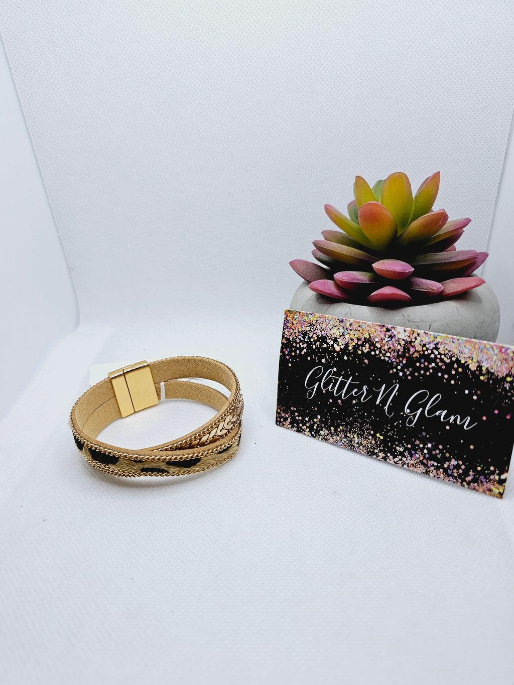 2089 Silver/Animal Print Criss Cross Wrap Bracelet