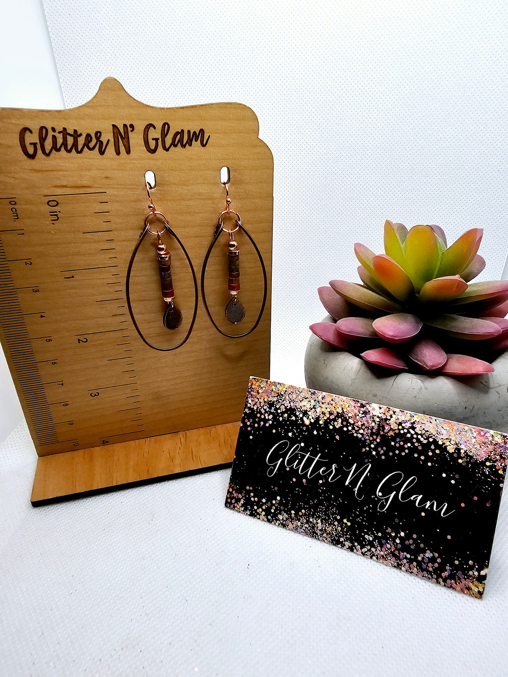 1822 Burgundy Open Teardrop with Rosegold Crushed Glass Dangle Earrings