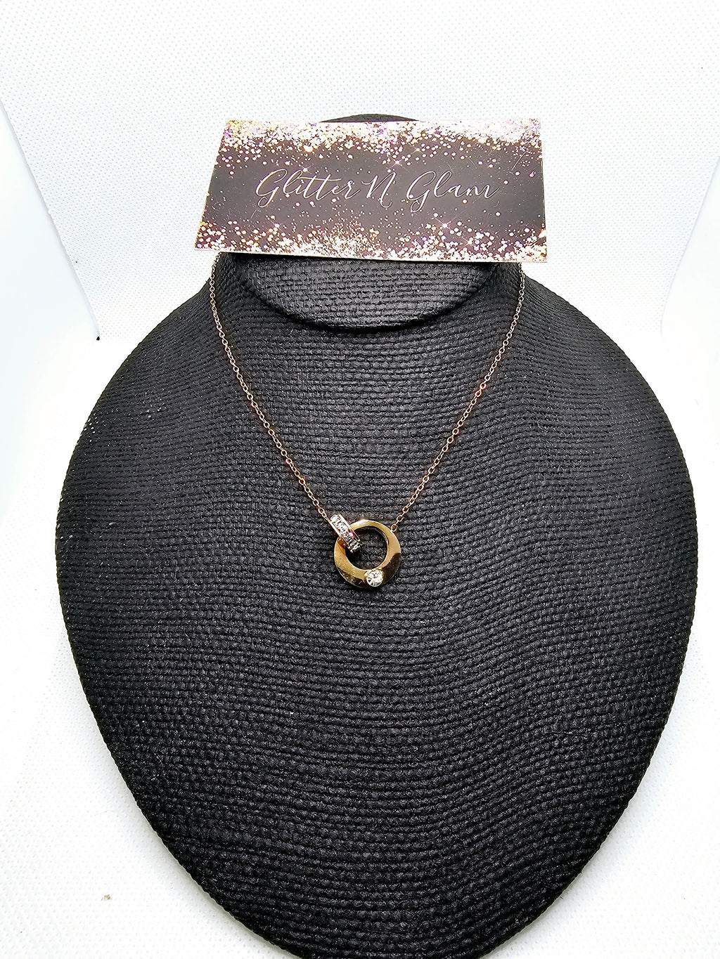 2436 Rosegold Short Length Necklace with circle Pendant and Bling